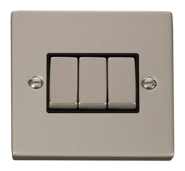 Description: Plate Switch, 3 Gang 2 Way, Black Insert Victorian