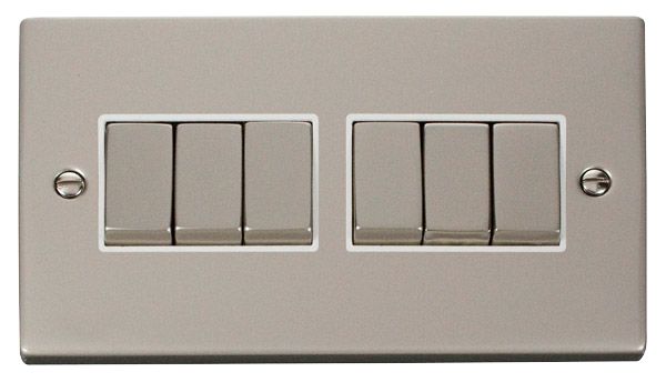 Description: Plate Switch, 6 Gang 2 Way, White Insert Victorian