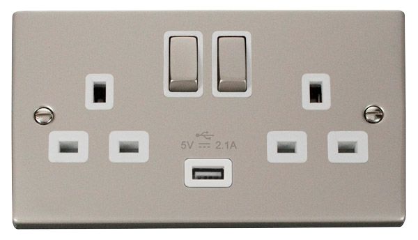 Click VPPN570WH Socket 2 Gang Switched and USB 13A