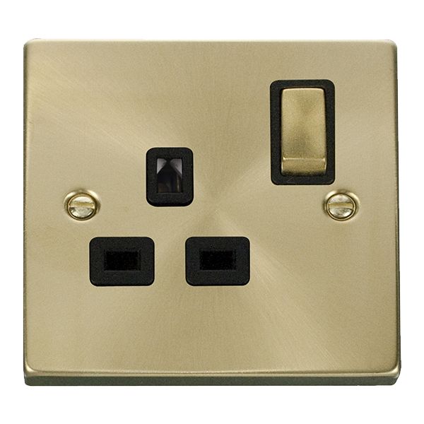 Click VPSB1535BK Socket 1 Gang Double Pole 13A Satin Brass/Black
