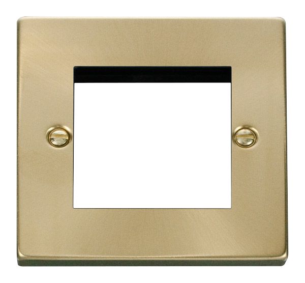 ['Integrated yoke (no yoke required)', 'Utilises New Media' modules', 'Victorian square edge plate design', 'Satin brass plate with black & white gasket']
