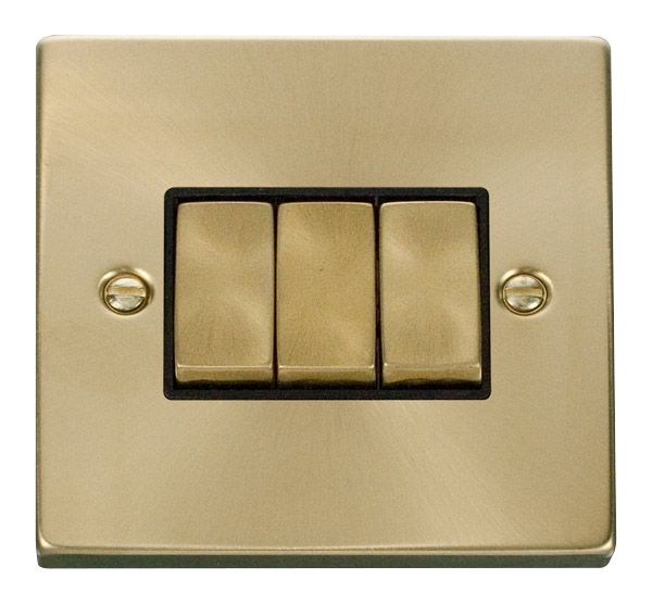 Click VPSB413BK Plateswitch 3G 2W 10A Satin Brass