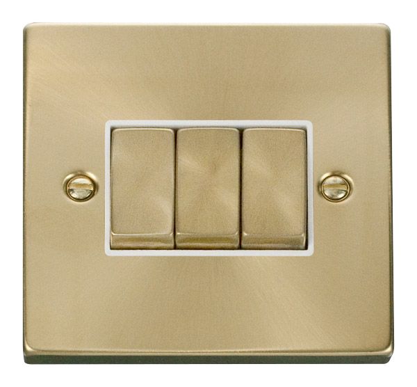 Click VPSB413WH Plateswitch 3G 2W 10A Satin Brass