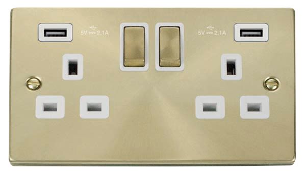Click VPSB580WH Socket 2 Gang Switched and USB 13A