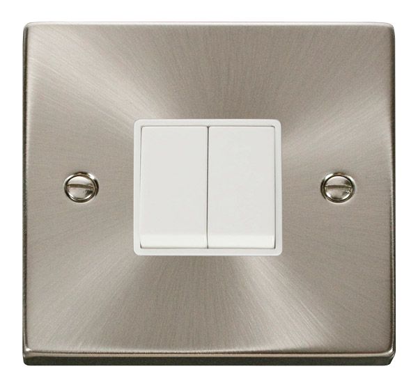 Click VPSC012WH Plateswitch 2 Gang 2W 10A Satin Chrome