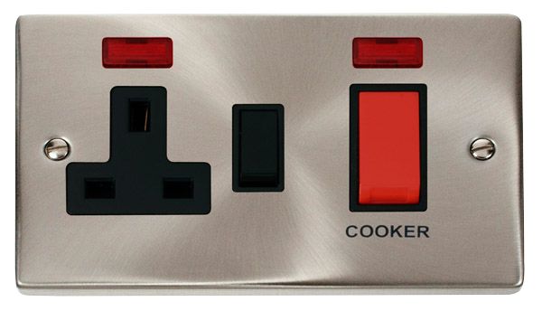 Description: Cooker Control Unit, c/w 13A Socket & Neon, Black Insert Victorian