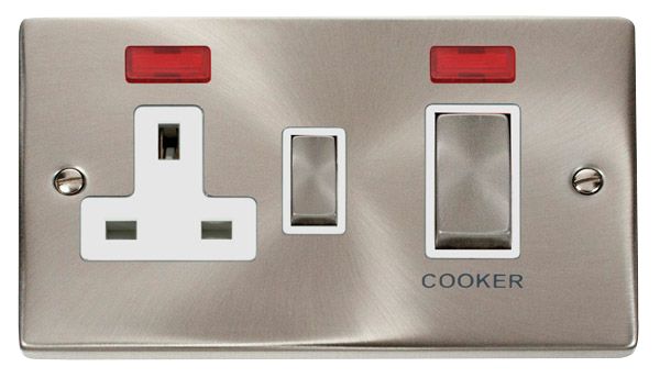 Description: Switch, DP c/w 13A Switched Socket & Neons, White Insert Victorian