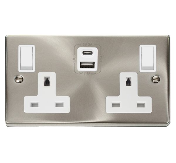 Click VPSC786WH Socket 2 Gang Switched and USB 13A