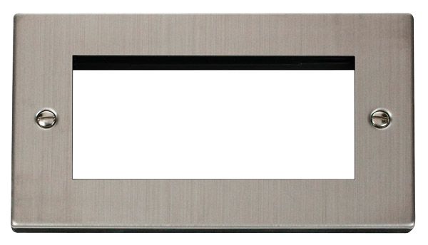 Description: Frontplate, 2 Gang 4 Module, Black & White Gasket Victorian