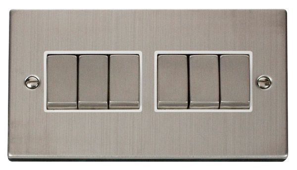 Description: Plate Switch, 6 Gang 2 Way, White Insert Victorian