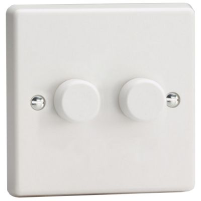 Description: Dimmer Switch, 2 Gang 2 Way Push-On/Off, White Knob
