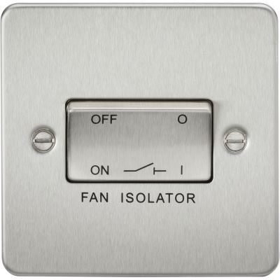 Ideal for providing a safe and simple method of isolating fan units in en-suite bathrooms, family bathrooms, utility rooms, store rooms etc. Often the fan unit will be wired into the lighting circuit for convenience and efficiency. With this kind of installation there is often a need to leave the lighting circuit live whilst isolating the fan for maintenance. Flat Plate low profile metal design with matching metal rocker.