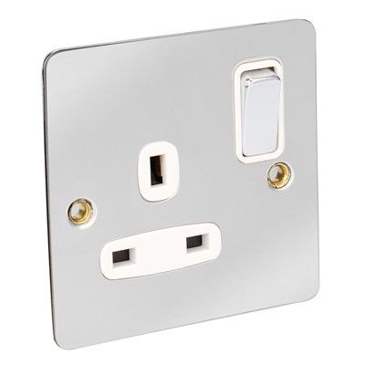 CED 13amp 1 Gang Switched Socket (Double Pole) Chrome White Inserts