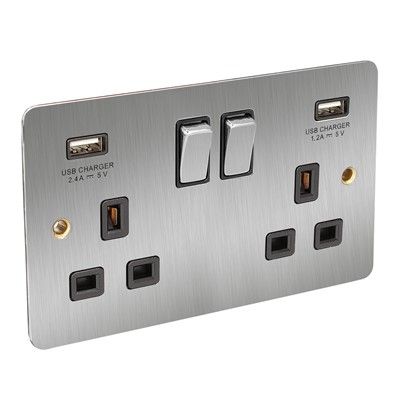CED 13a Switched Socket Twin USB Satin Chrome Black Insert