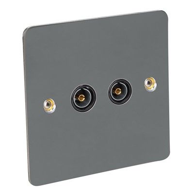 CED 2 Gang TV Socket Black Nickel Black Inserts