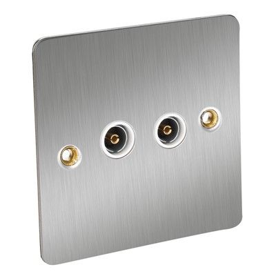CED 2 Gang TV Socket Satin Chrome White Inserts