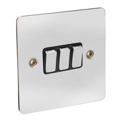 CED Flat Switch 10a 3g 2w Chrome Black Insert