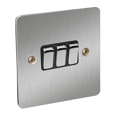 CED 10amp 3 Gang 2 Way Switch Chrome Black Inserts