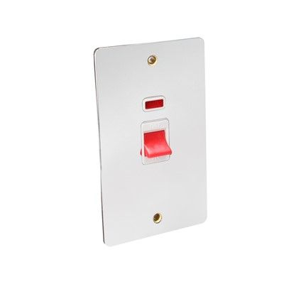 CED 45amp Double Pole Switch with Neon (2 Gang Plate) Chrome White Inserts