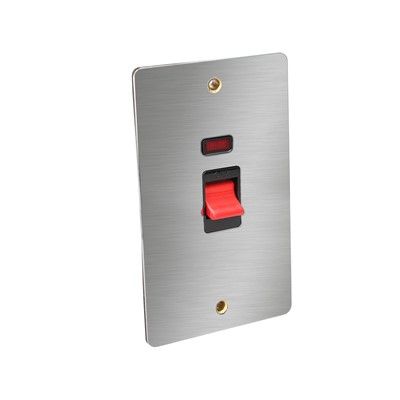 CED 45amp Double Pole Switch with Neon (2 Gang Plate) Satin Chrome Black Inserts