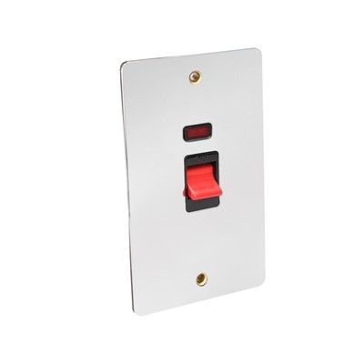 CED 45amp Double Pole Switch with Neon (2 Gang Plate) Chrome Black Inserts