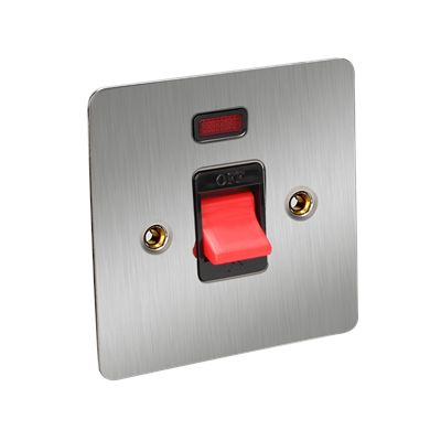 CED 45amp Double Pole Switch with Neon Square Single Plate Satin Chrome Black Inserts
