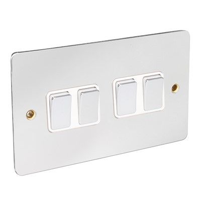 Axiom Decorative Flat Plate Accessories are a contemporary rounded corner range of polished stainless steel switches & sockets with a slim profile, metal plated rockers and colour coordinated eyelets. Available in polished chrome, satin chrome & black nickel, there are black & white insert options for chrome finishes & black only for nickel. The complete range of switches, sockets, dimmers, telecom & TV outlets is made to very high quality standards - with full Kitemark approval.