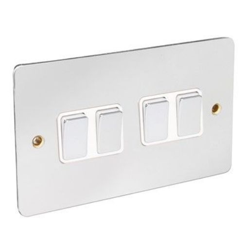 CED 10amp 4 Gang 2 Way Switch Chrome White Inserts