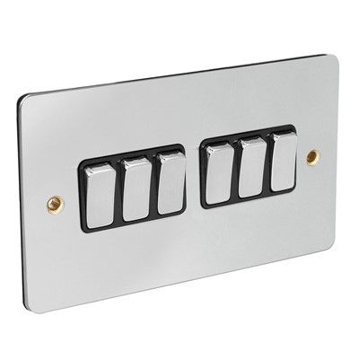 CED Flat Switch 10a 6g 2w Chrome Black Insert
