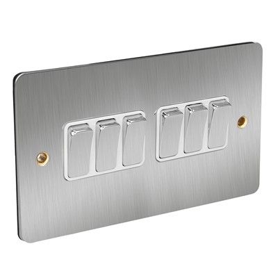 CED 10amp 6 Gang 2 Way Switch Satin Chrome White Inserts