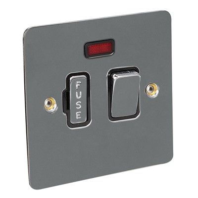 CED 13amp Fused Connection Unit Switch with Neon Black Nickel Black Inserts