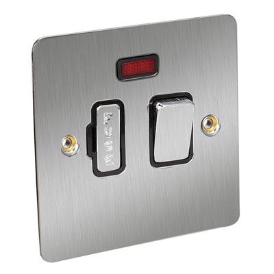 CED 13amp Fused Connection Unit Switch with Neon Satin Chrome Black Inserts