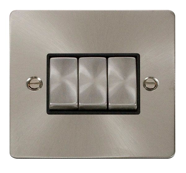 Description: Plate Switch, 3 Gang 2 Way, Black Insert