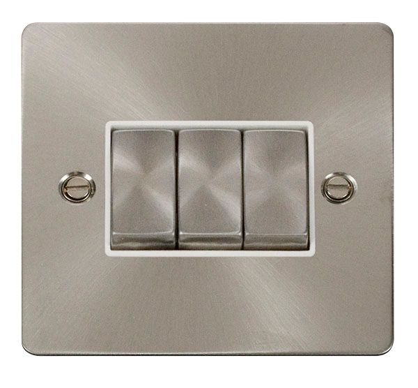 Description: Plate Switch, 3 Gang 2 Way, White Insert
