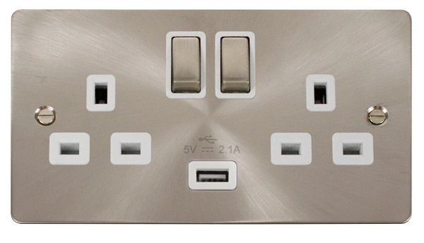 Click FPBS570WH Socket 2 Gang Switched and USB 13A