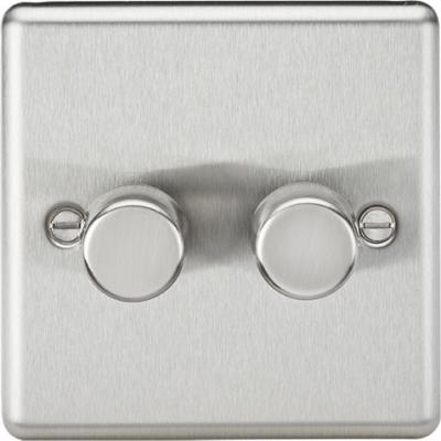 Knightsbridge Dimmer Switch 2 Gang 2 Way Rounded Edge 10-200W Brushed Chrome | CL2182BC