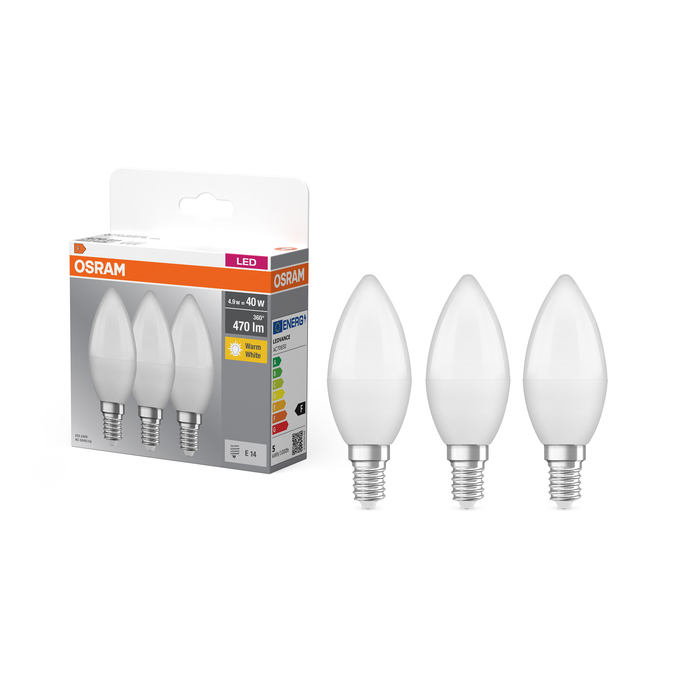 LEDVANCE 3 Pack LED Base Classic B 40 4.9W 827 Frosted E14