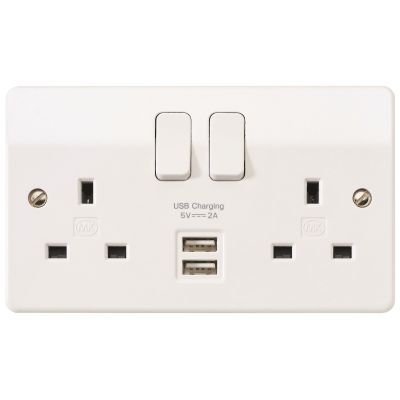 MK K2744WHI Socket 2G Switched Double Pole USB 2A 5V