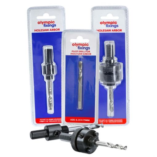 Olympic Hex Arbor 14/30 For Olympic Holesaw. Arbor comes complete with pilot drill and is suitable for 7/16 hexagon shank type. The pilot drill is replaceable and comes as a unit in a hanging blister pack