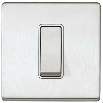 MK Electric Switch 1 Gang SP 2 Way Rocker Large White Insert Aspect 20A Brushed Stainless Steel | K23471BSSW