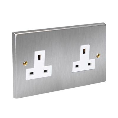 CED Unswitched Twin Socket Satin Chrome White Inserts
