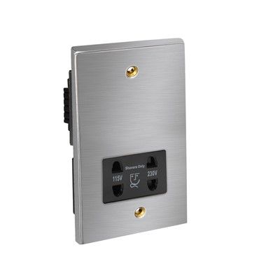 CED Shaver Socket Dual Voltage 110/240v Satin Chrome Black Inserts