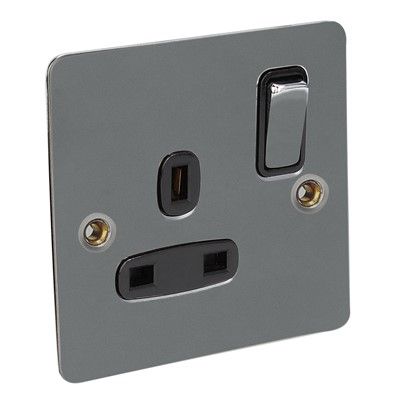 CED 13amp 1 Gang Switched Socket (single Pole) Black Nickel Black Inserts