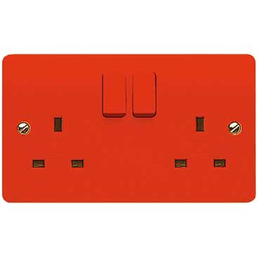 Description: Socket, 2 Gang Switched DP, Red Rockers & Plate