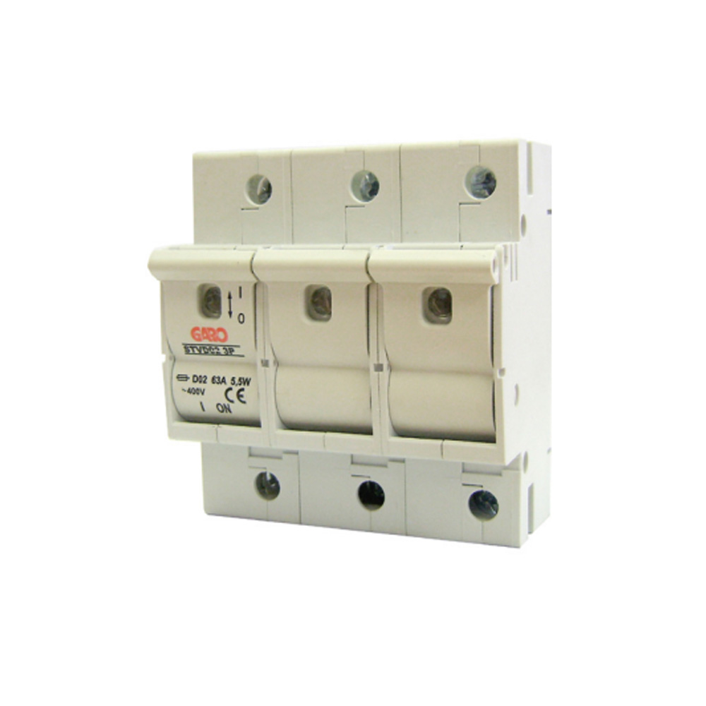 Garo 63 amp 3 pole mains switch fuse, used as mains switch for 1,2 and 3 row consumer units used in the Republic of Ireland.