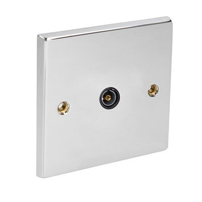 Axiom Polished Chrome & Satin Chrome Decorative Accessories are a square cornered range of switches & sockets made from steel plated brass with a durable chrome plated finish and available with white or black inserts. The complete range of switches, sockets, dimmers, telecom & TV outlets is made to very high quality standards - with full Kitemark approval.