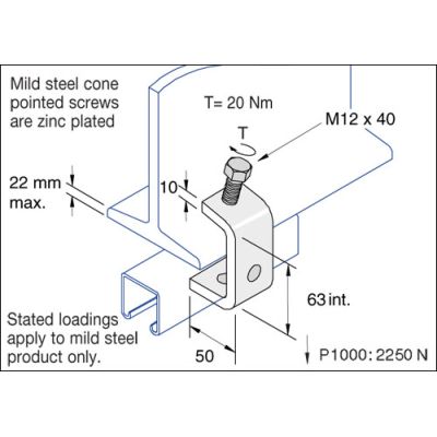 Unistrut Unistr P1271 Beam Clamp 50x63mm M12